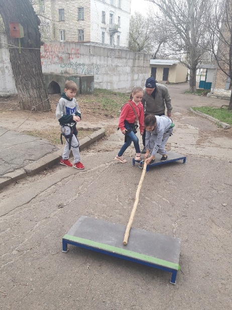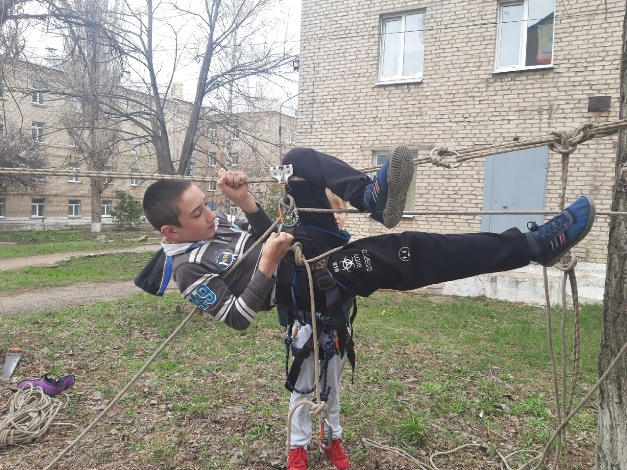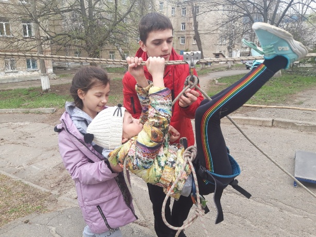 12 апреля на базе ГОУ СПО ЛНР «Луганский архитектурно-строительный колледж имени архитектора А.С. Шеремета» руководители кружков ГУДО ЛНР «Республиканский центр детско-юношеского туризма и краеведения» Самойлов И.В., Лохвицкая Л.В. и Портная О.В. провели мастер-класс по технике пешеходного туризма для детей, семьи которых были эвакуированы из зоны боевых действий и размещены в общежитии колледжа.