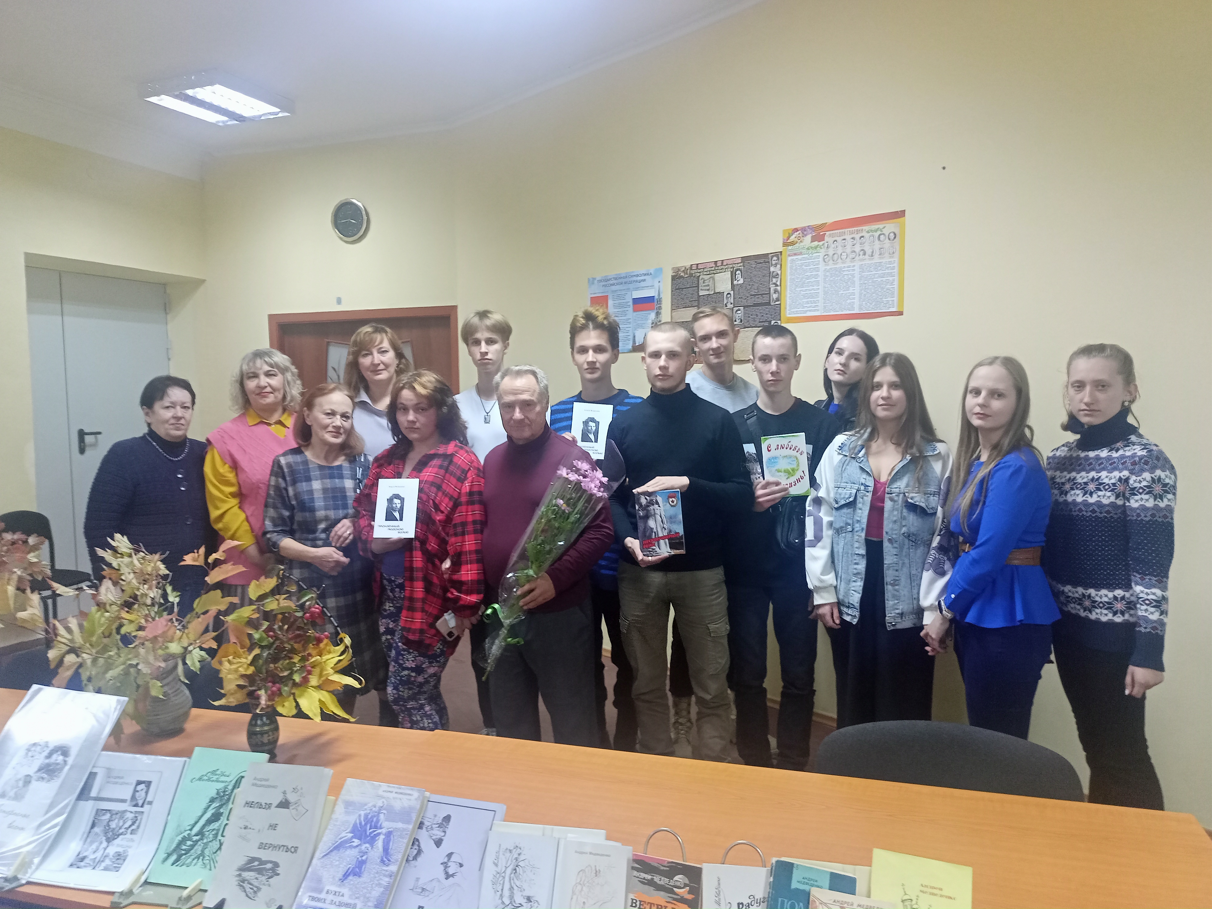 Вниманию студентов колледжа были представлены книги А.Медведенко из фонда библиотеки, который пополнился новыми сборниками , среди которых –«Пронзенный людскою болью» и новое издание «Нескончаемого рейда, подаренными поэтом.
