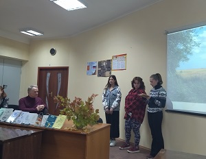 По окончании литературного вечера студенты гр. Л-9-21 (Конотенко Т, Сушко Д. ,Николенко С.,Мосиенко И.) и гр.СА-11-11( Волынец М., Трофимова Д. и Набоженко В.) поздравили поэта с 45-летним юбилеем творческой деятельности , прочитав с большим вдохновением его стихи.