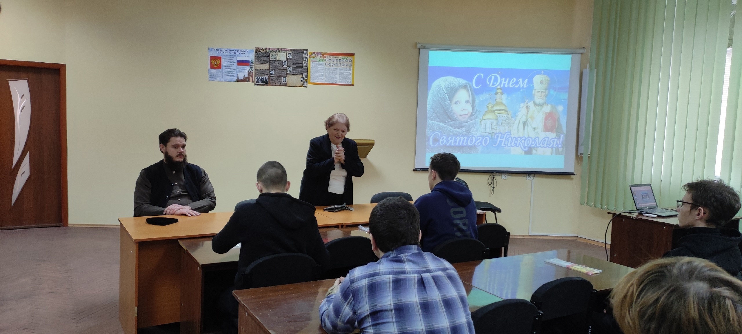 В ознаменование праздника Дня Святого Николая прошла традиционная для этого события встреча директора колледжа Ходыревой Ольги Тимофеевны и Протоиерея Храма Святых священномучеников Киприана и мученицы Иустины, Отца Николая со студентами льготных категорий.