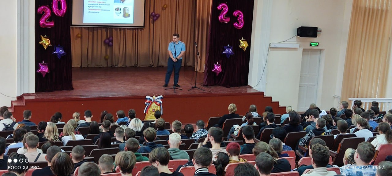 4 октября 2023 года в Луганском архитектурно-строительном колледже имени архитектора А.С. Шеремета прошел Всероссийский открытый урок по основам безопасности жизнедеятельности, приуроченный ко Дню гражданской обороны Российской Федерации с участием старшего лейтенанта внутренней службы Главного управления МЧС России по ЛНР Ковалева Артура Сергеевича. Подготовили и провели урок преподаватели колледжа Воронова Е.В., Воронов Э.А. и студенты группы Л-9-11 Чернявская М. и Стрельцова Н. Гость мероприятия Ковалев Артур Сергеевич ознакомил студентов с задачами гражданской обороны России, показал видеофильмы о работе спасателей.