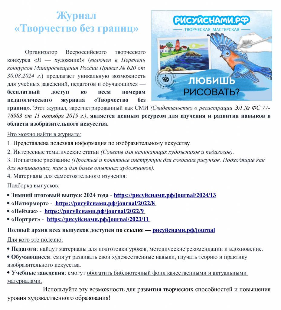 Педагогический журнал «Творчество без границ»