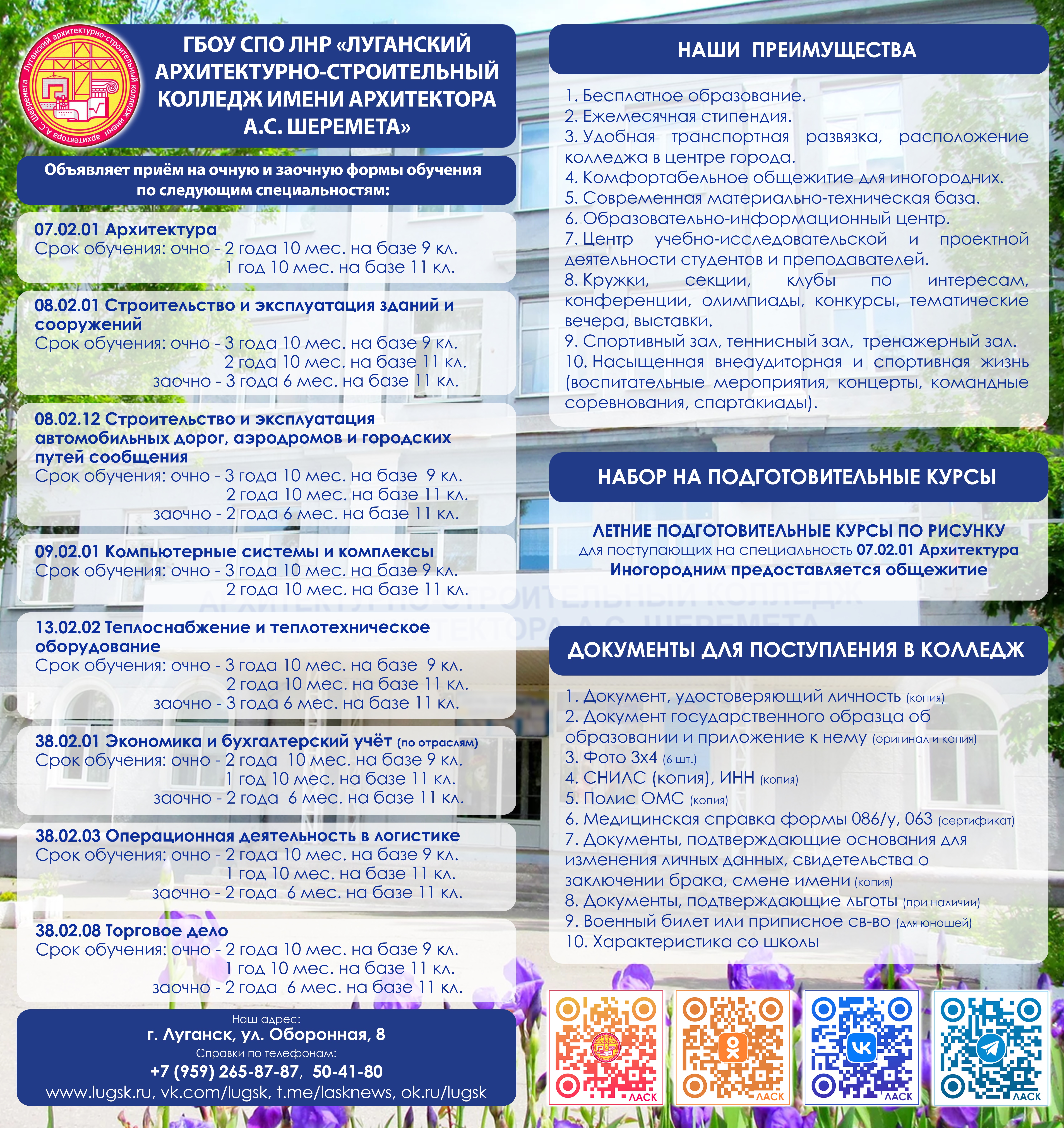 Государственная бюджетная профессиональная образовательная организация Луганской Народной Республики «Луганский архитектурно-строительный колледж имени архитектора А.С. Шеремета»